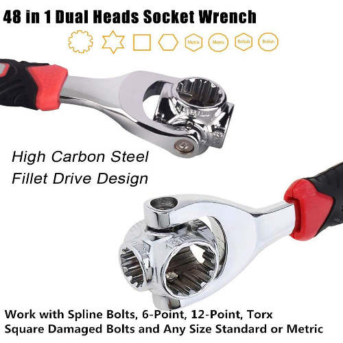 Con esta LLAVE UNIVERSAL 48 EN 1, tendrás cantidad de funcionalidades diferentes. Ahora no será necesario que tengas una caja llena de llaves diferentes, sólo tendrás que graduar la herramienta y tendrás diferentes tamaños.